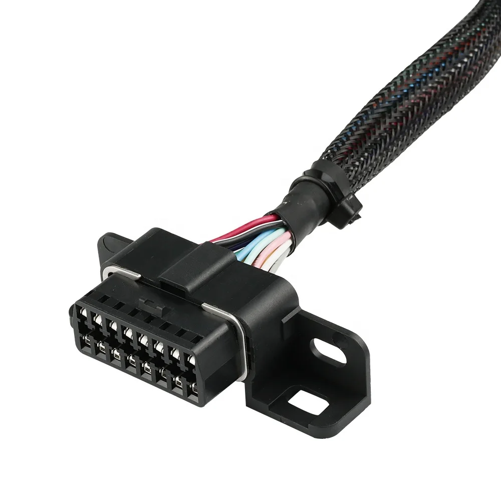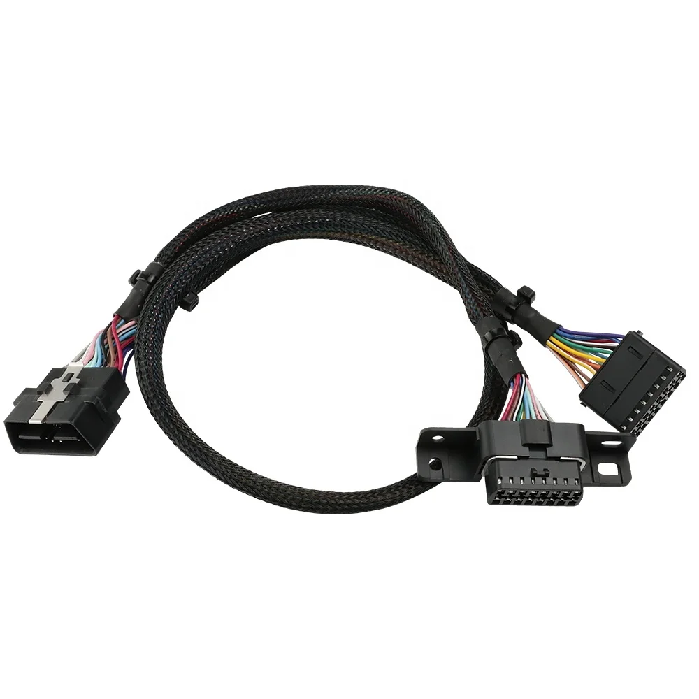 OBD2 16 Pin Splitter Y Cable 20AWG Thick Copper Core With Nylon Mesh And Mounting Brackets For Vehicles